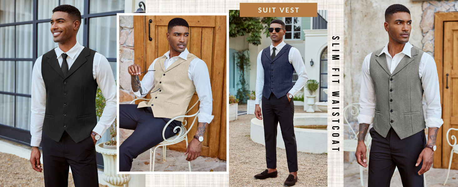 A modern take on a traditional staple – Slim Fit Notch Lapel Textured Suit Vest