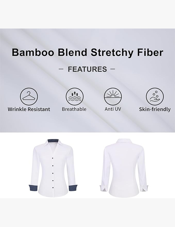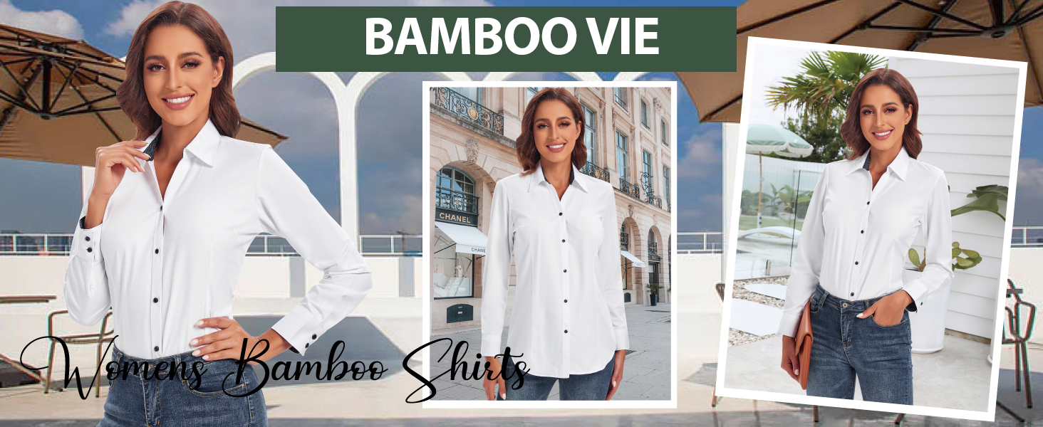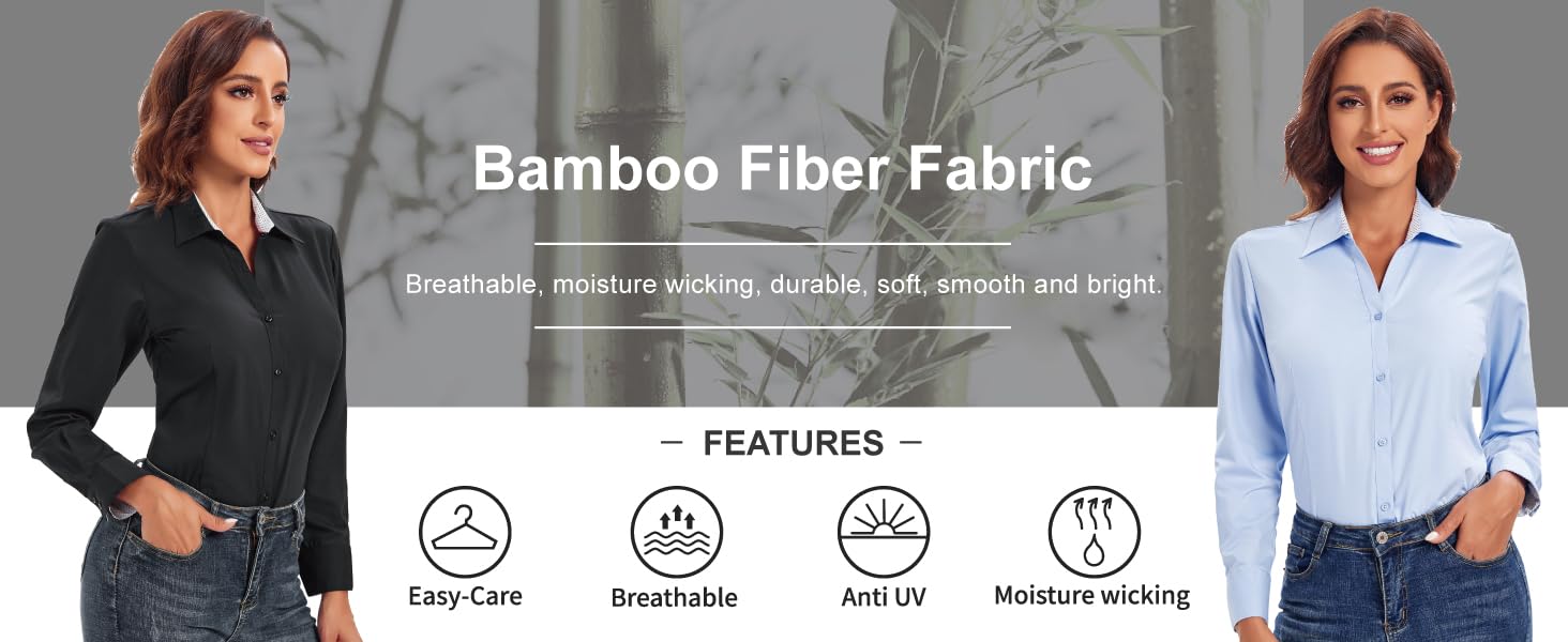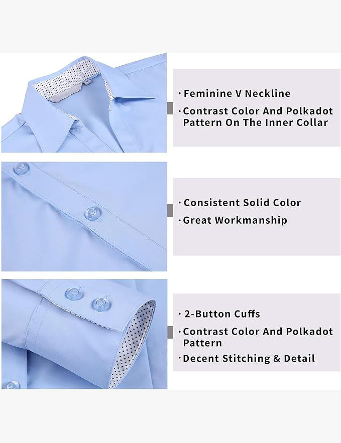 BAMBOO VIE Womens Button Down Dress Shirts V Neck Long Sleeve Blouses