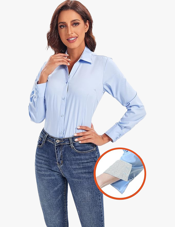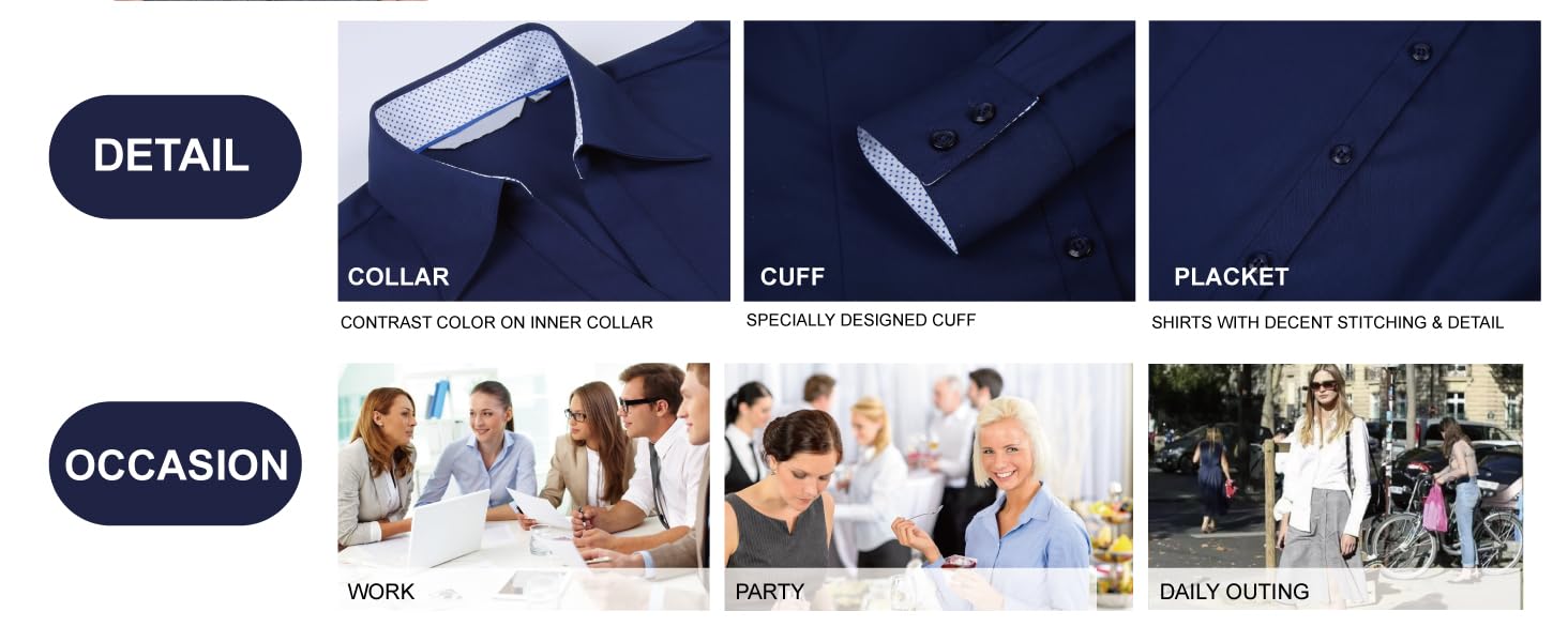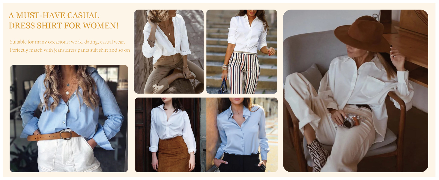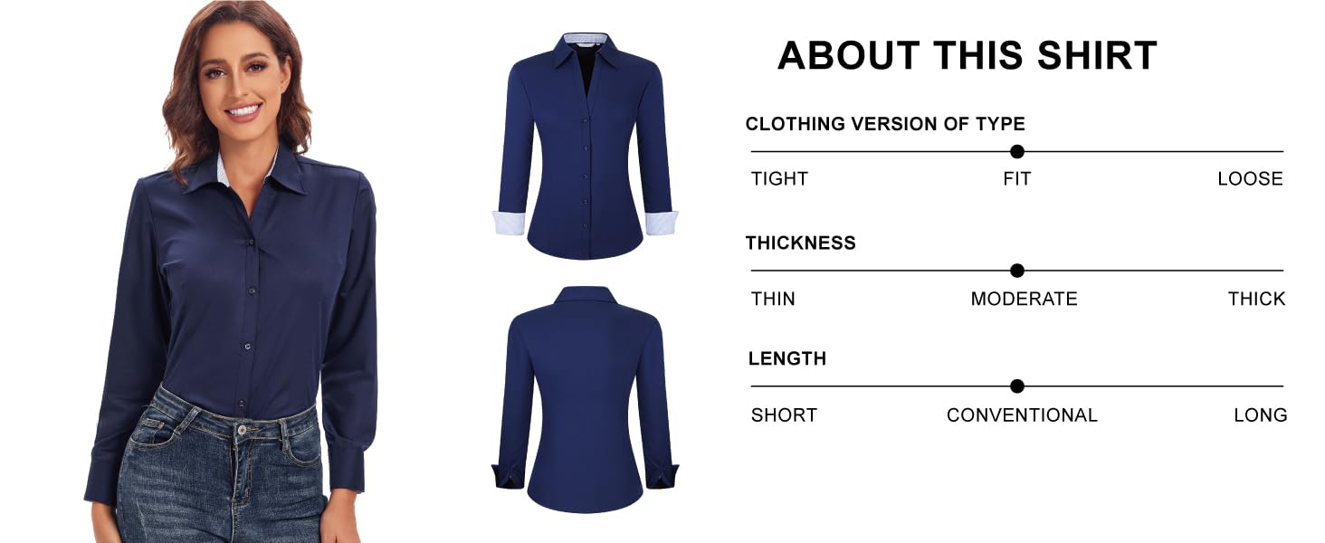 BAMBOO VIE Womens Button Down Dress Shirts V Neck Long Sleeve Blouses