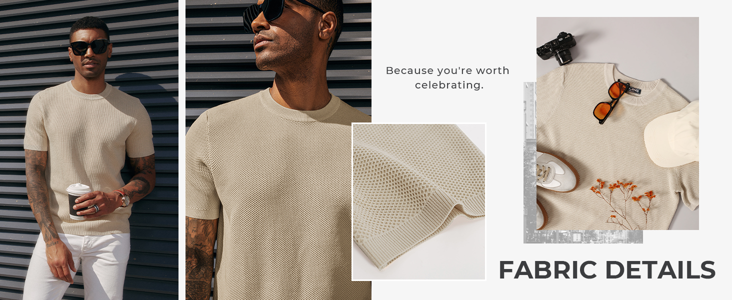 Mens T Shirt Short Sleeve Crew Neck Waffle Knit Tee Stylish Pullover Tops