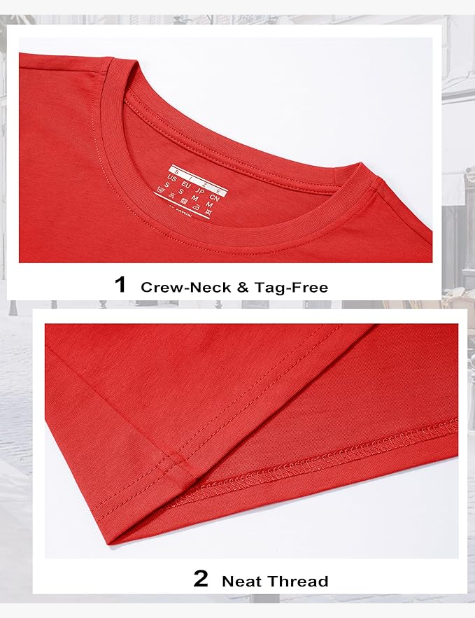 Crew neck design highlights your neckline and makes you fashionable and comfortable. Tag free collar and good sewn can reduce chafing and increase comfort.
