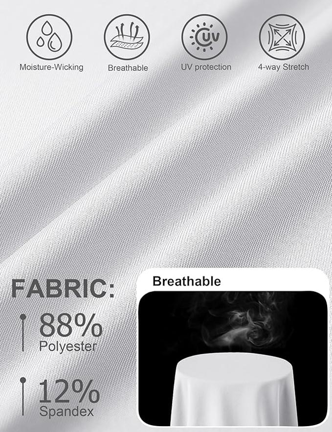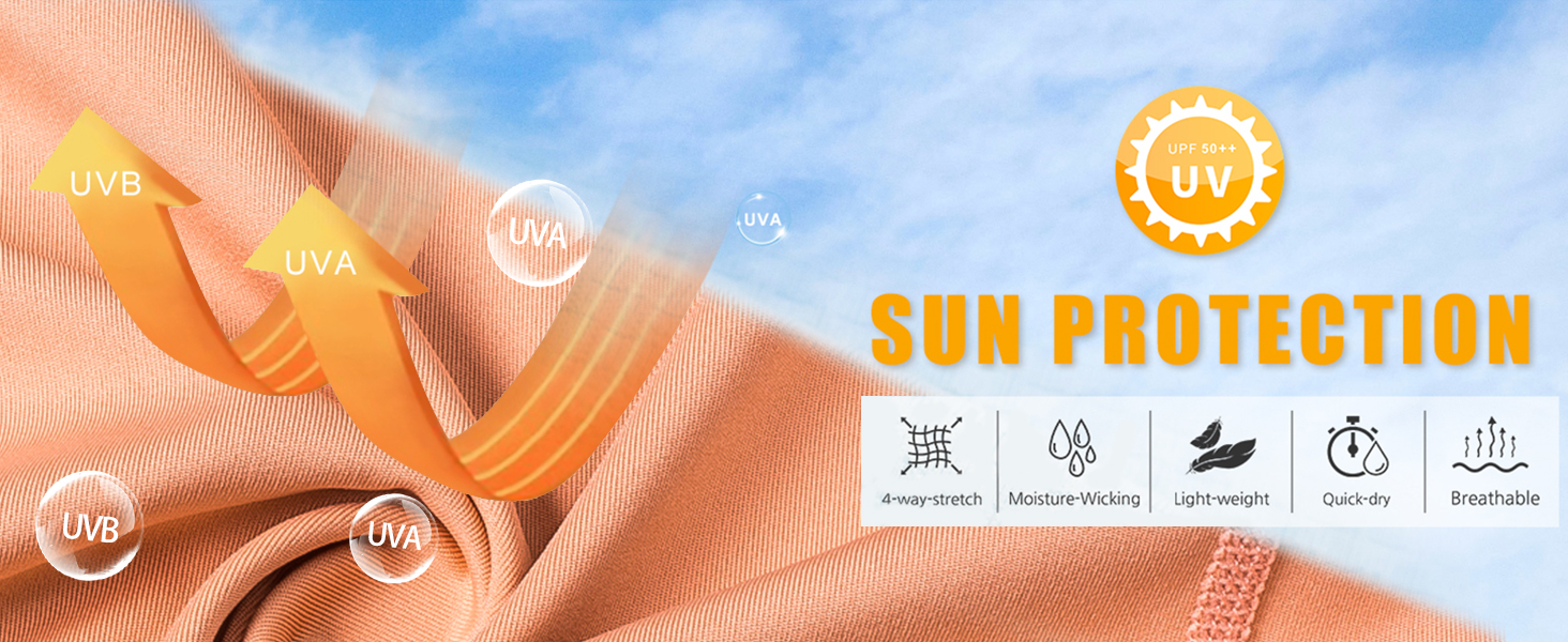 UPF 50+ fabric for maximum protection against harmful UVA and UVB rays, sweat-wicking material that pulls moisture away from the body to keep you cool and dry, offer soft and lightweight experience for your daily activities.