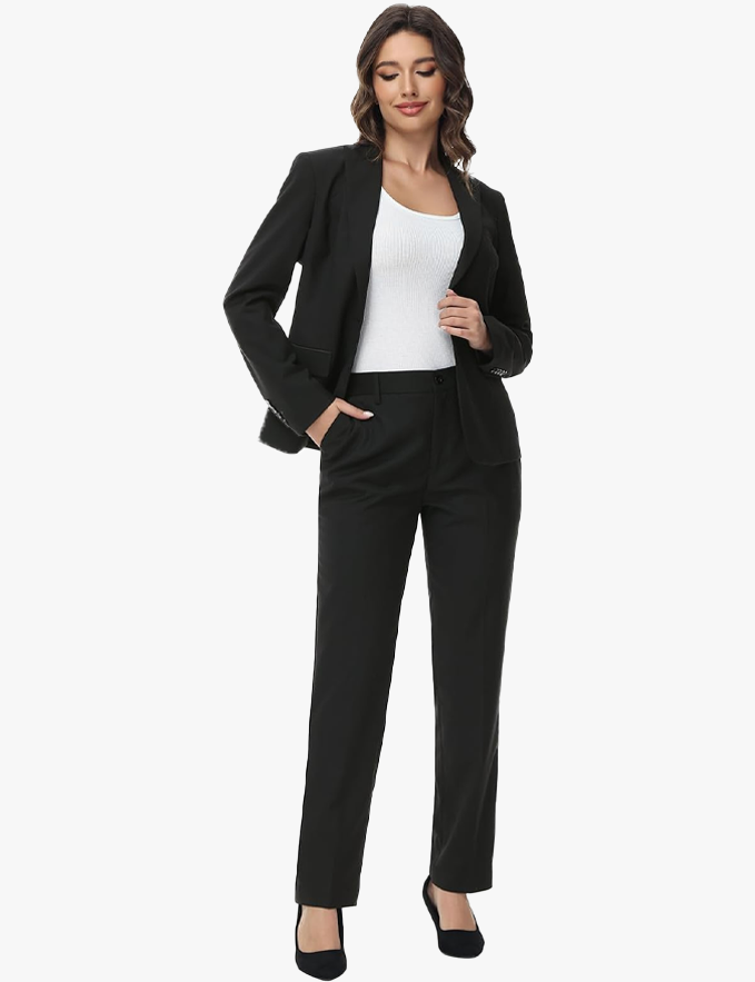Elevate your professional attire this polished power suit. Crafted for the modern professional, its clean lines and sophisticated details lend authority and confidence to every meeting, presentation, and interview. This 2 Piece Work Outfits for Women help you make a lasting impact without sacrificing comfort or style.