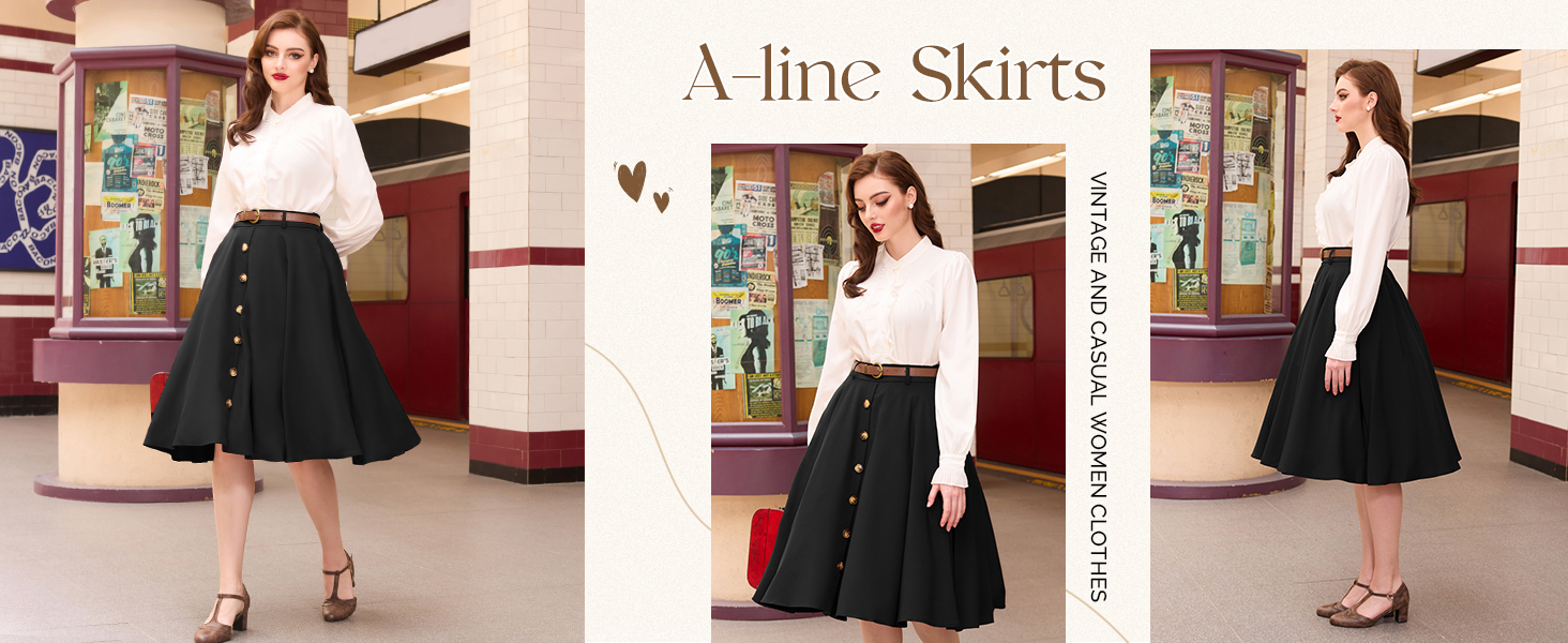The solid versatile A-line skirt easy to match any tops or shirts , blouse and sweater,it will makes you look super charming and elegant,perfectly shows your personality. Easy to dress up for formal or casual occasion